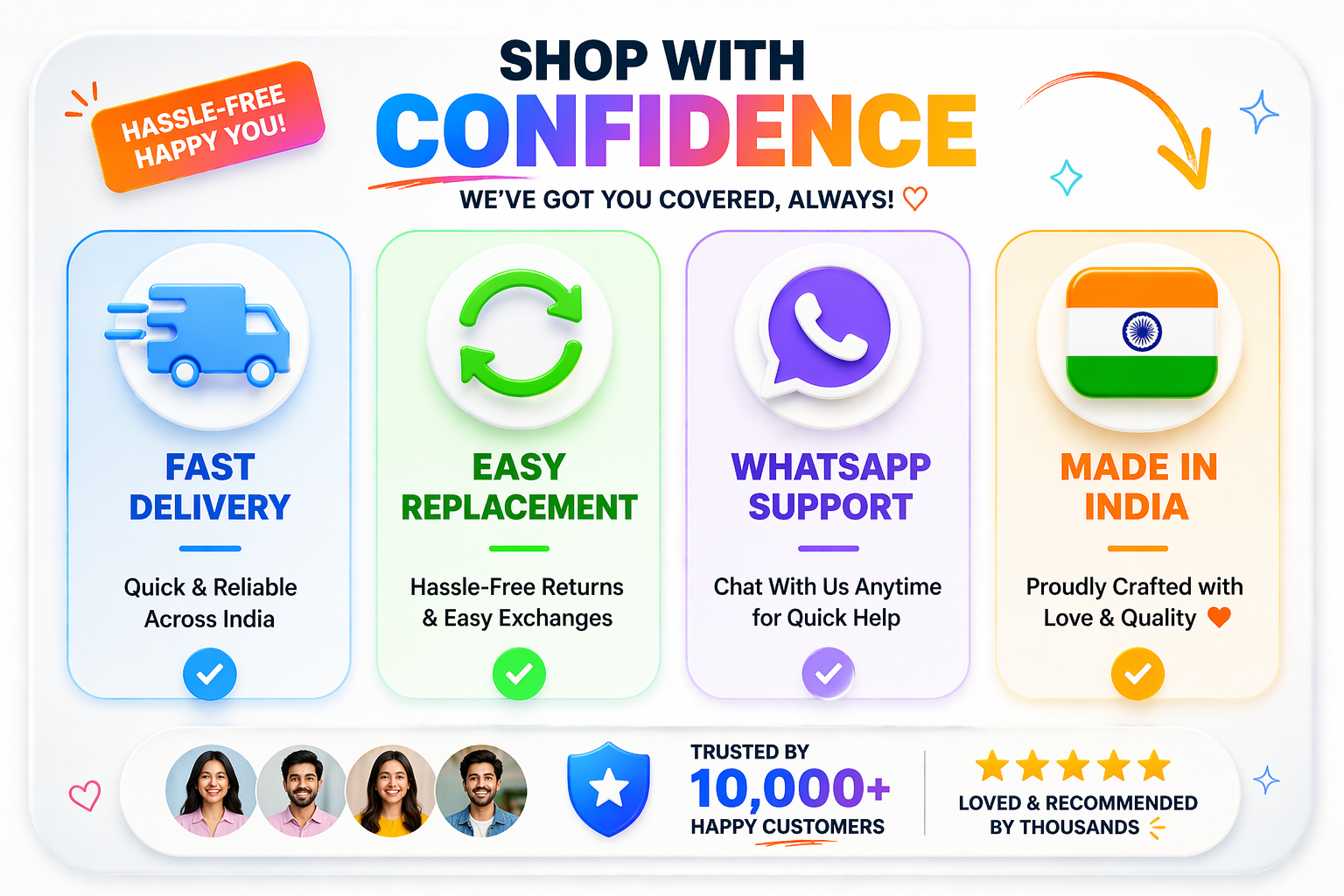 We use premium, durable materials with superfine finishing to ensure every product looks elegant, lasts long, and feels truly special.