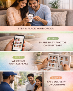 After placing the order, send us your baby’s photos on WhatsApp.