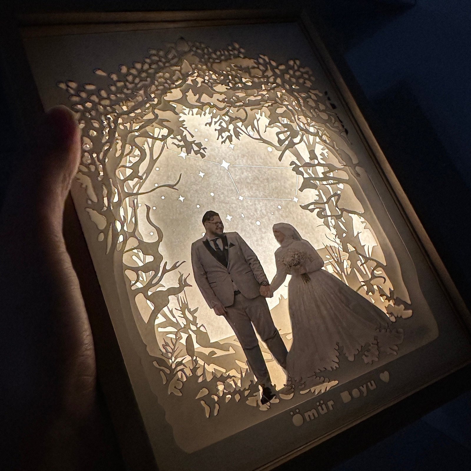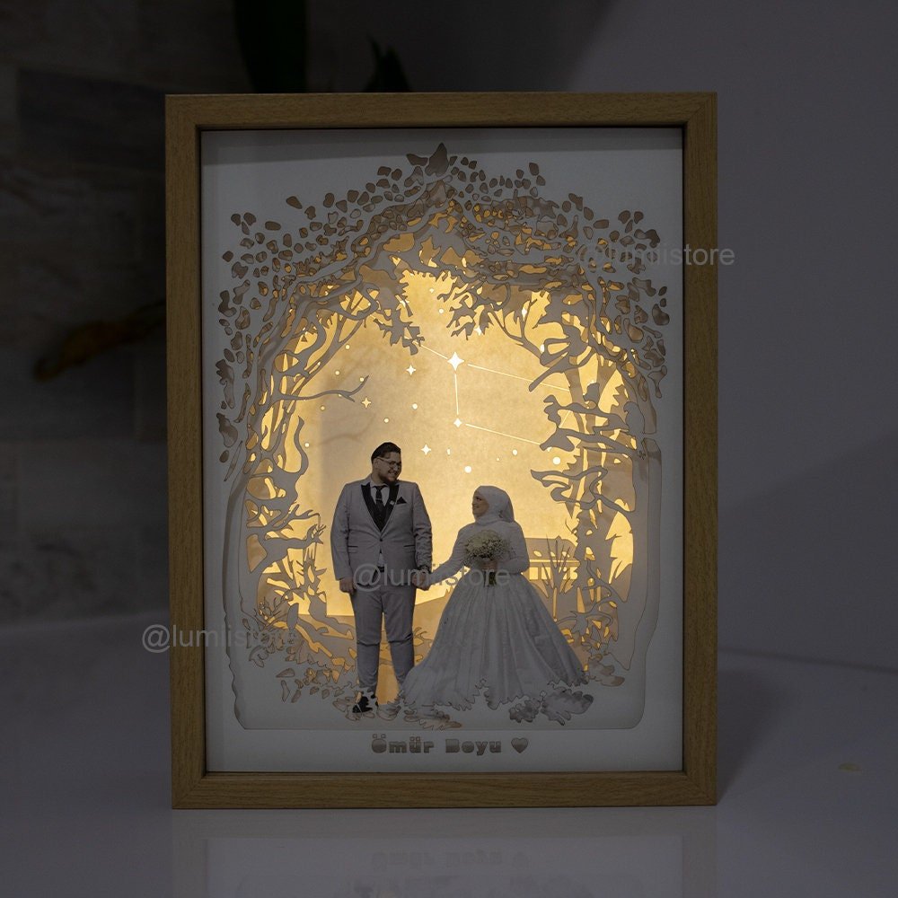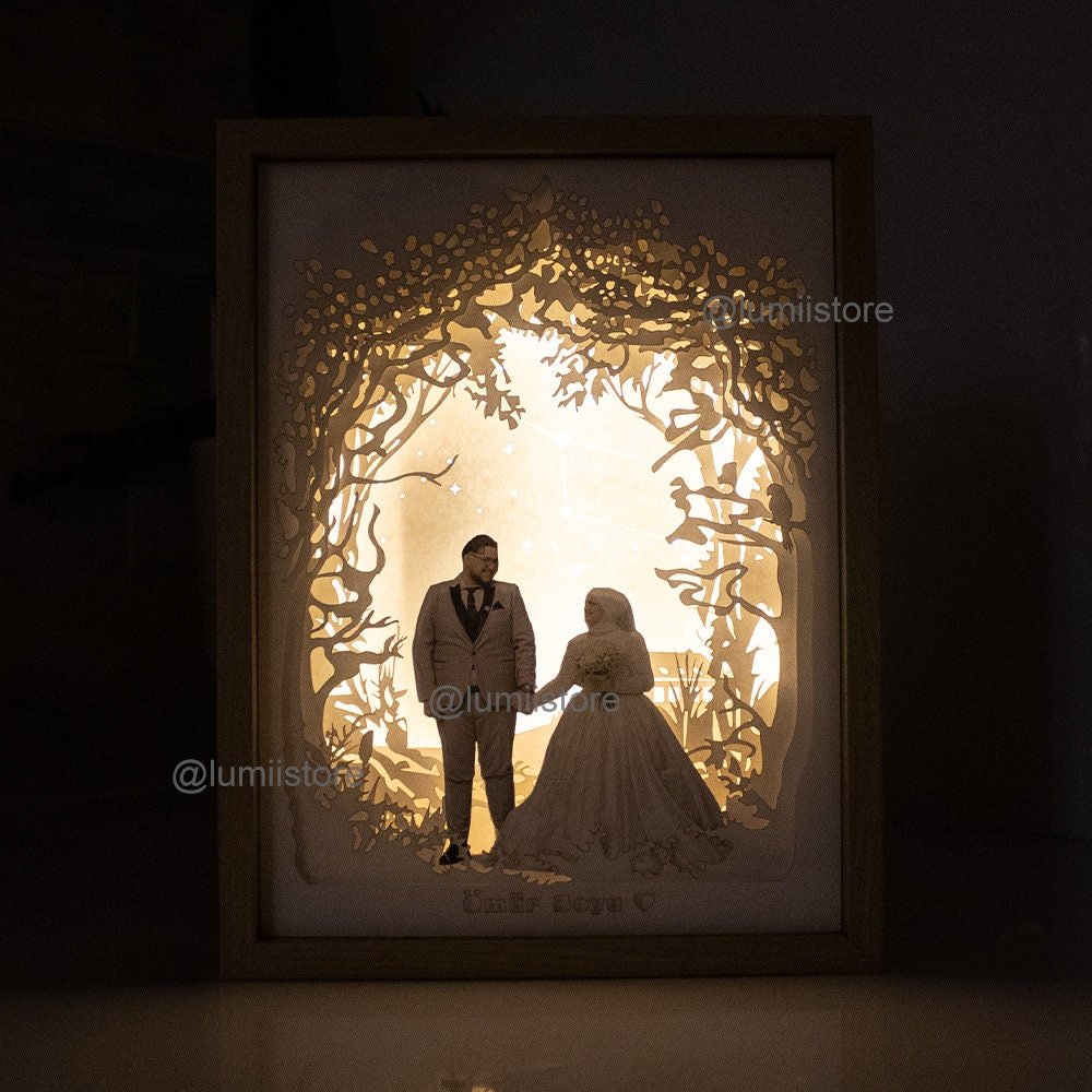 Photos capture memories, but this lightbox takes them a step further by turning them into luminous works of art. With its layered 3D effect and glowing illumination, the Custom Couple Photo Lightbox creates an atmosphere of warmth and romance in any space.
