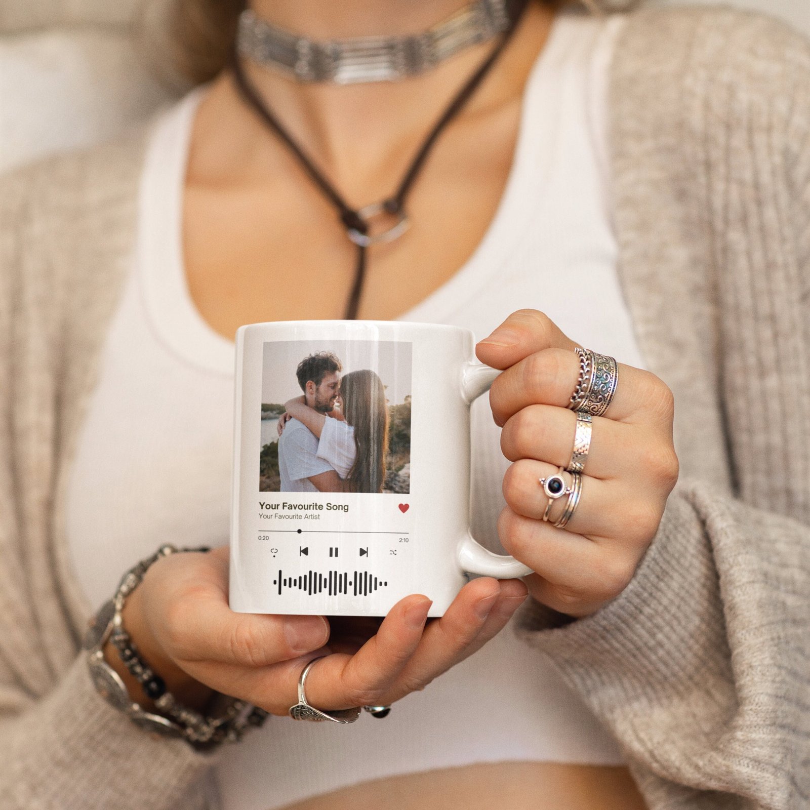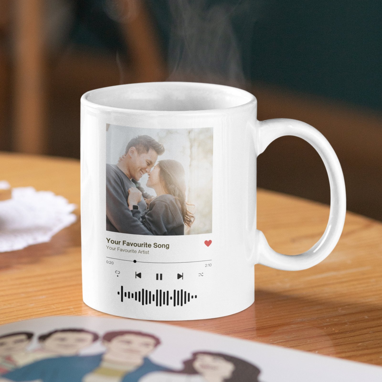 - Friends – Gift them a mug with your best memory together and a track that reminds you of them.
