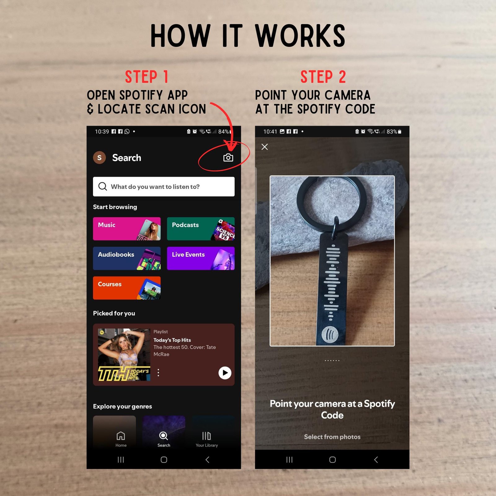 - Scannable Spotify Code – Just open the Spotify app, scan, and instantly enjoy your chosen track.