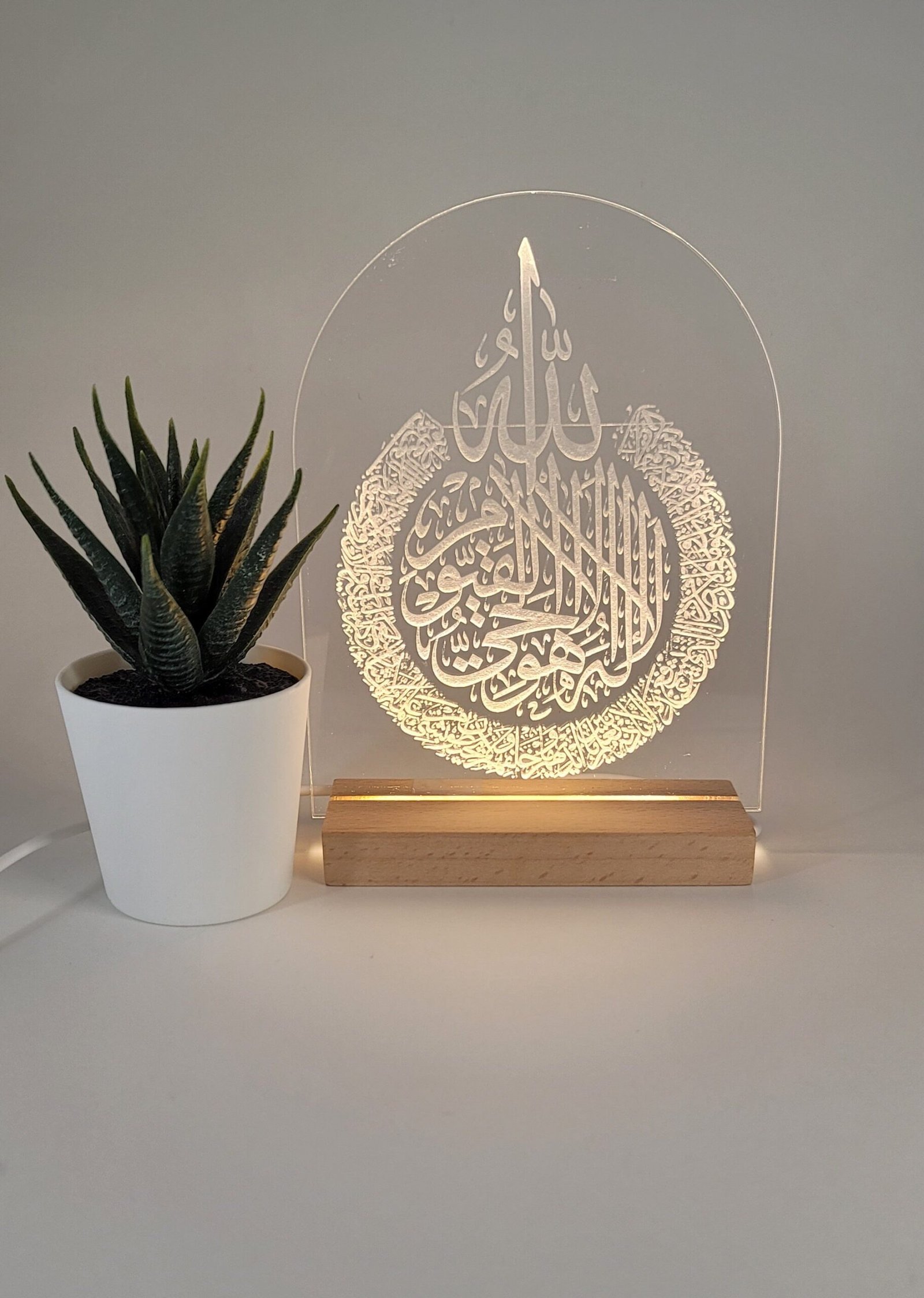 Whether placed in your prayer room, living area, or gifted to a loved one, this illuminated Islamic art piece serves as a gentle reminder of Allah’s presence, protection, and power.
