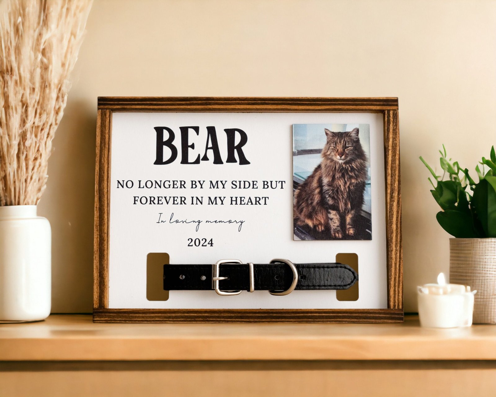 - 🐕 Personalized Collar Display Frame Specially designed to hold your pet’s collar securely, turning a simple keepsake into a timeless tribute that can be displayed with pride and love.