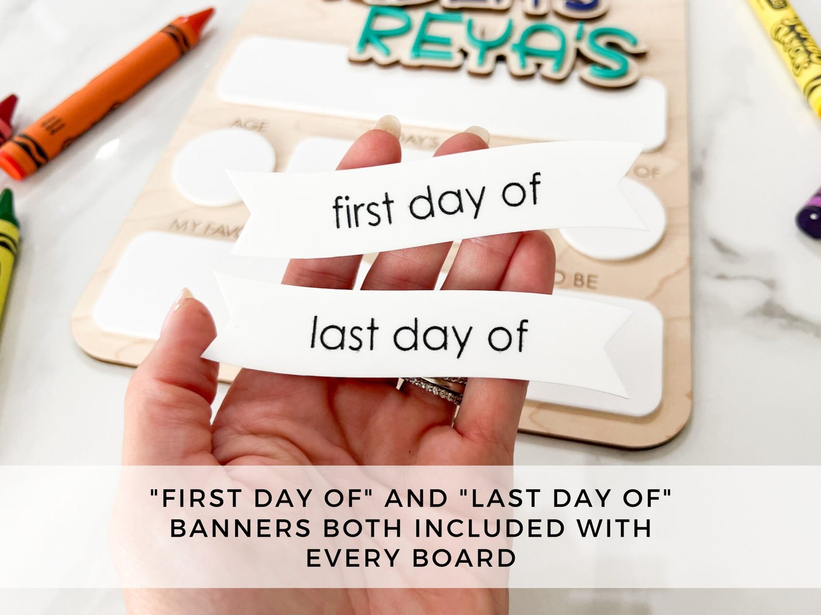 - Dual Functionality: First Day & Last Day Each board comes with interchangeable headers: “First Day Of” and “Last Day Of”, letting you use it twice a year without buying a new sign.