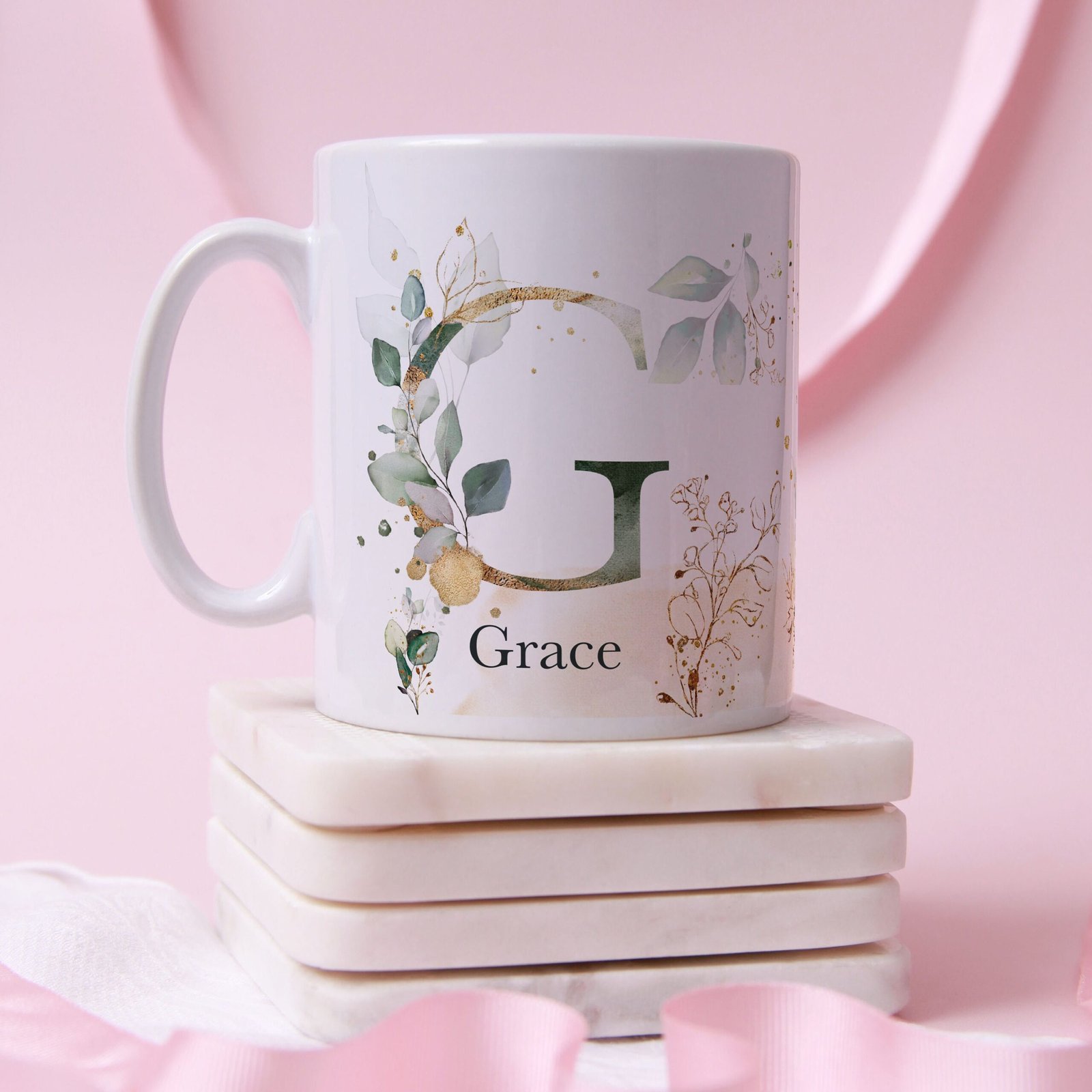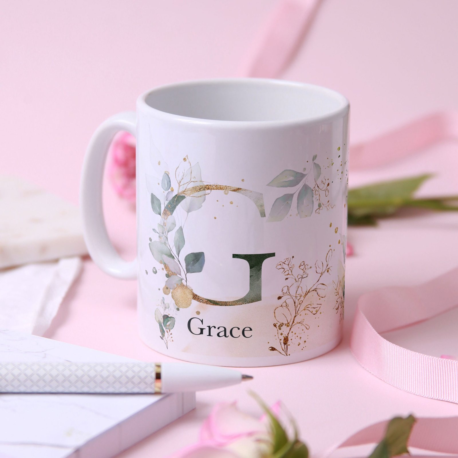 - 🖊️ Name Personalisation Add a name below or beside the initial in your chosen typography, creating a truly bespoke item that stands out on every desk or kitchen shelf.