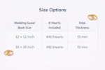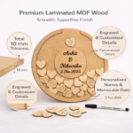A beautiful keepsake where your guests leave heartfelt notes on wooden hearts — creating memories you’ll cherish forever. Perfect for weddings, engagements, anniversaries, and milestone celebrations.