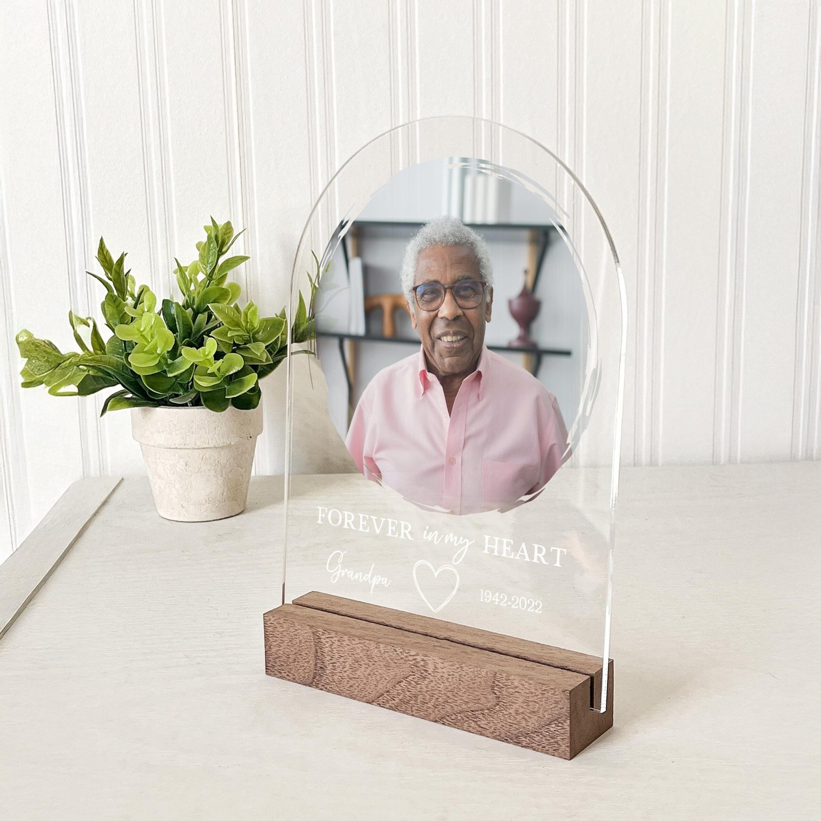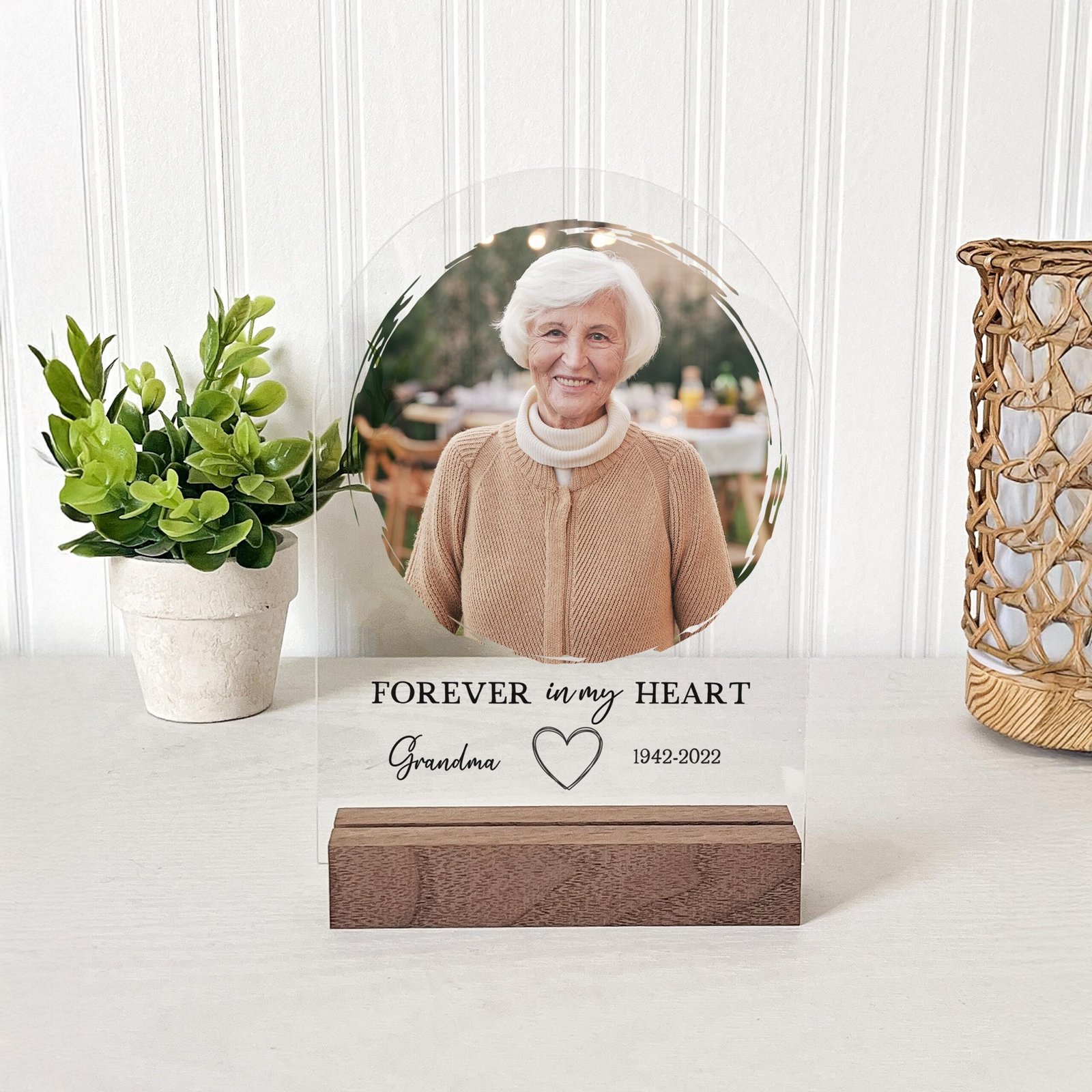 This elegant acrylic piece is a heartfelt gift to honor and remember someone special. Offer solace to those grieving and preserve a cherished memory with a personalized touch. Ideal for memorials, anniversaries, or anytime you want to keep their spirit close.