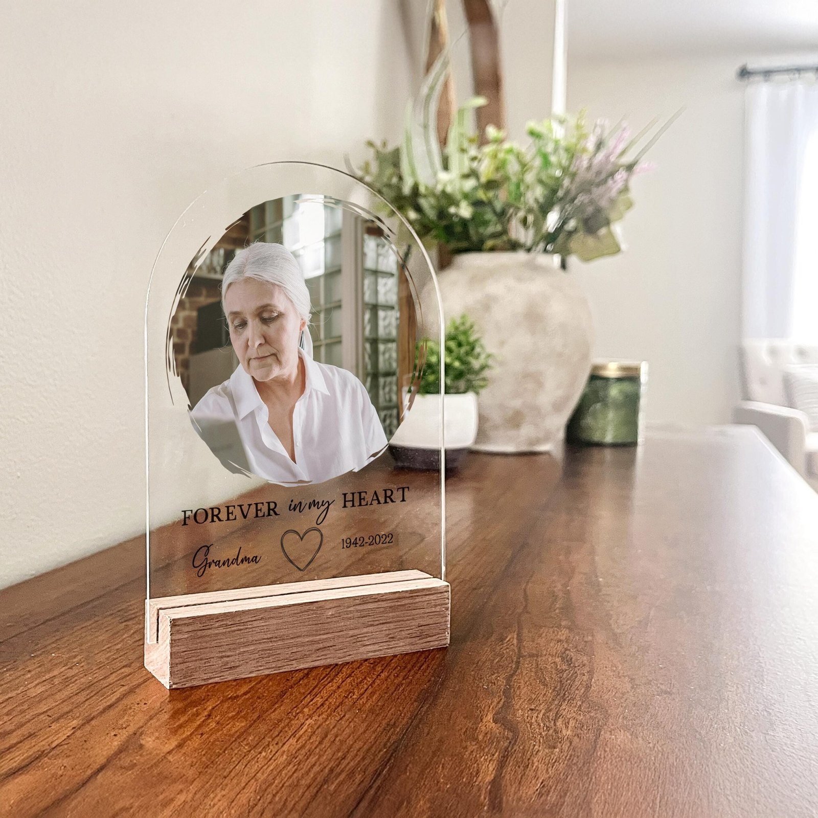 While flowers fade and sympathy cards are set aside, a personalized acrylic plaque endures as a meaningful piece of art. It doesn’t just express condolences—it offers daily comfort. The crisp clarity of acrylic combined with a personal photo and heartfelt message creates a powerful emotional experience.