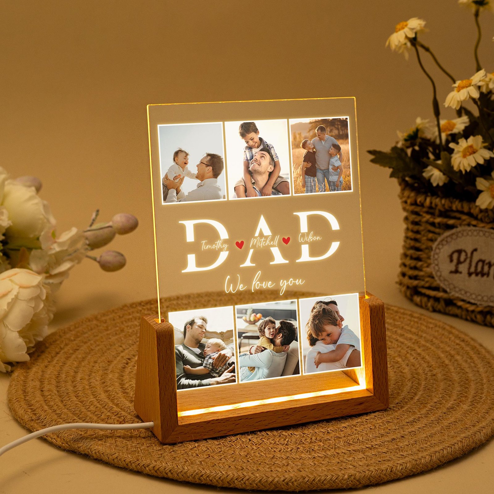 Conclusion: Brighten your husband or Dad’s bedroom and heart with a personalized photo night light that adds a touch of warmth and personalization to their space. This unique custom name light is a perfect holiday gift that showcases cherished memories and celebrates the best Dad ever. Illuminate their room with love and light through a thoughtful and sentimental gift that creates a cozy ambiance and brings a smile to their face. Give the gift of illumination and memories with a personalized night light that brightens up their world.