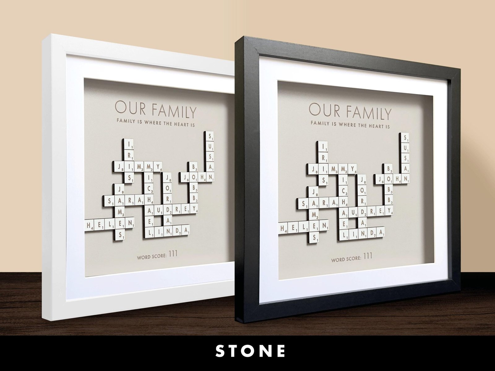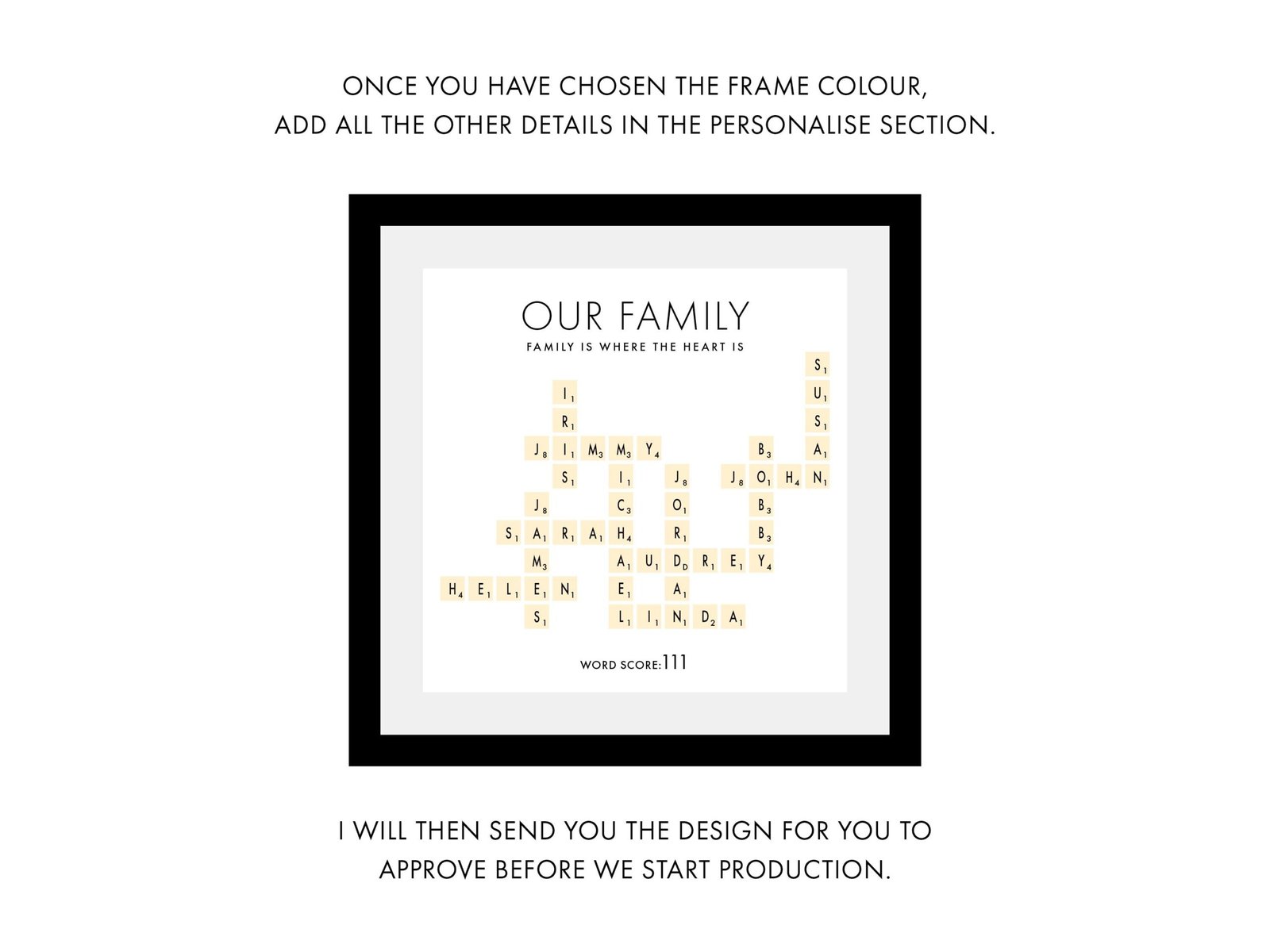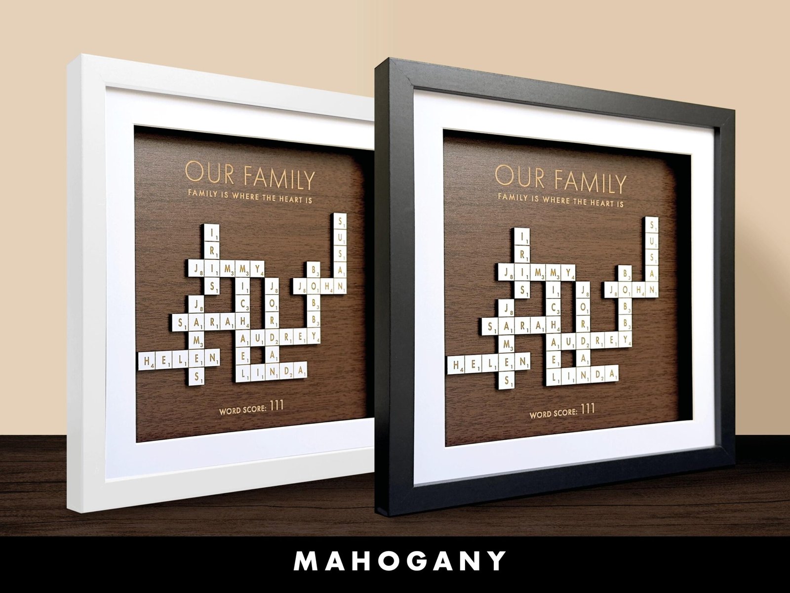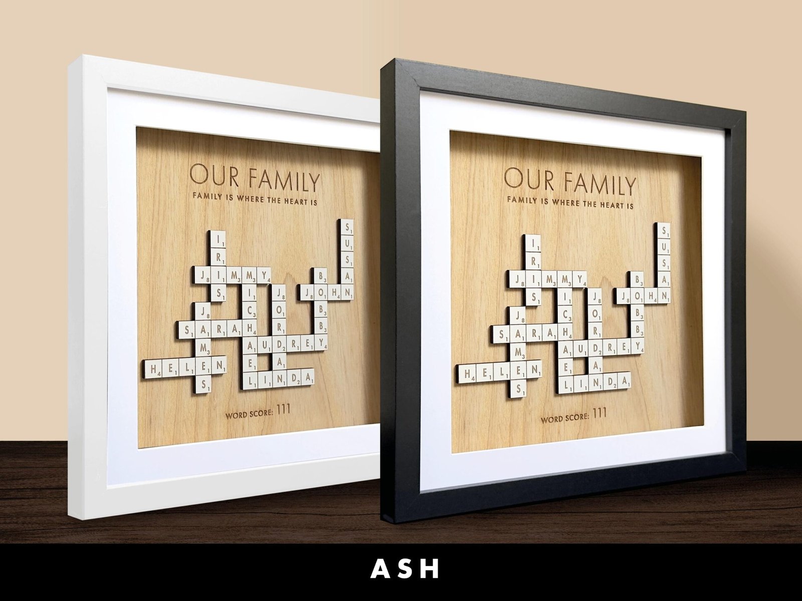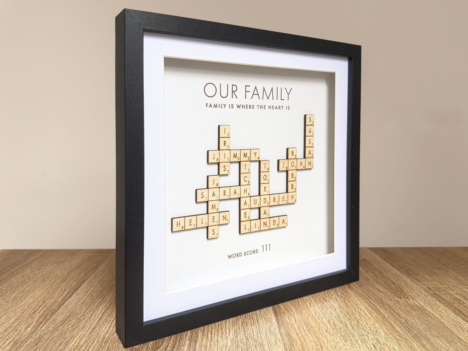 • Handcrafted Quality: Each Scrabble family names frame is carefully made with attention to detail, ensuring a beautiful and lasting piece for your home.