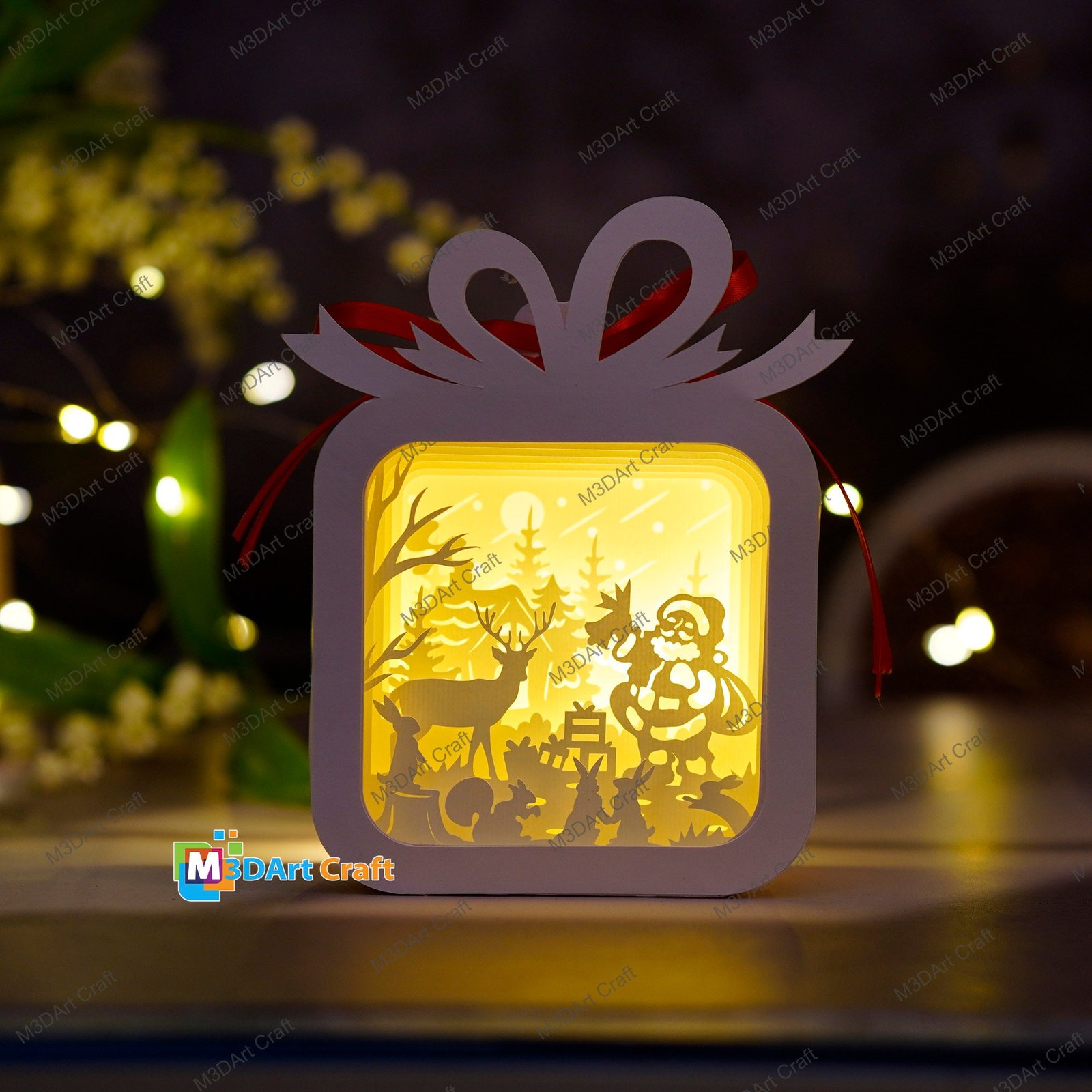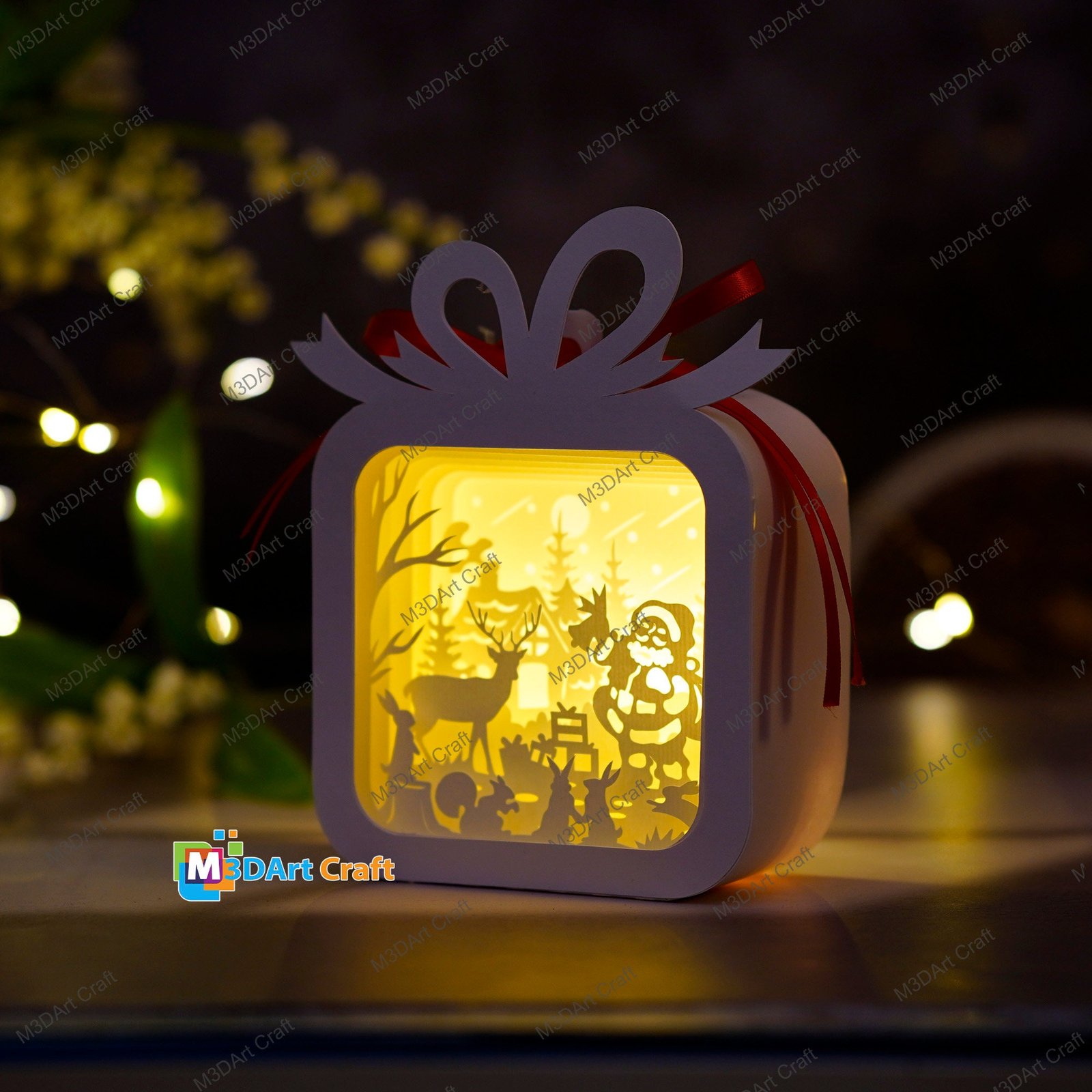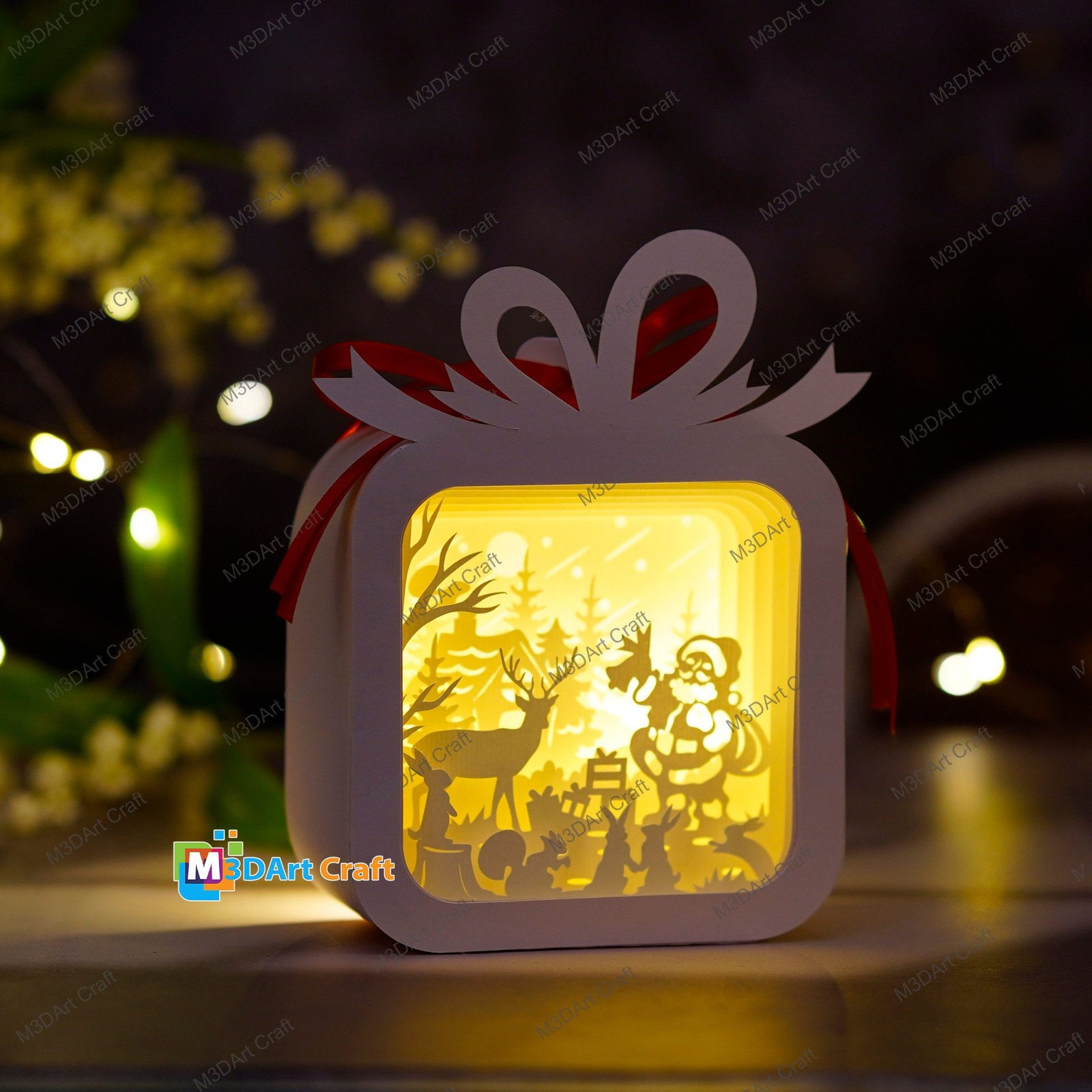 Transform your space into a winter wonderland with our Santa Claus Paper Lantern Gift Box SVG Template. Craft DIY lightbox Christmas ornaments and shadow boxes with ease using this festive template, adding a whimsical touch to your holiday decor.
