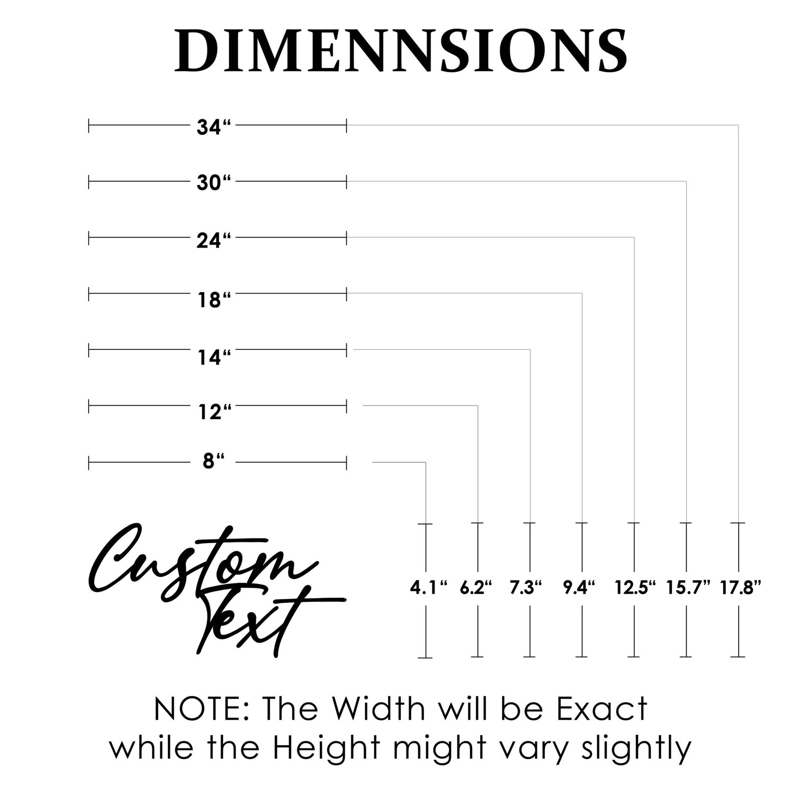 8 inches, 12 inches, 14 inches, 18 inches, 24 inches, 30 inches, 34 inches